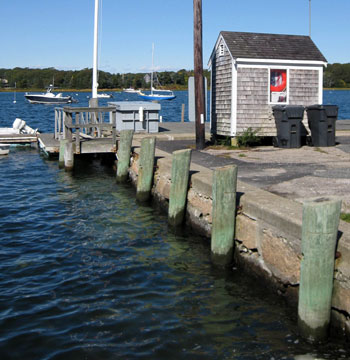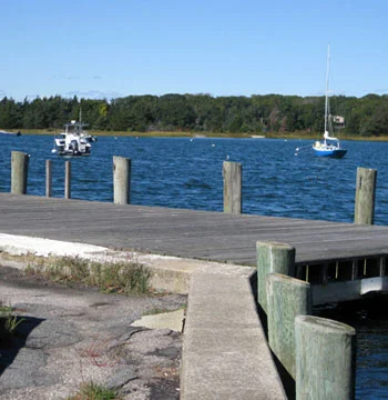 Construction of the original public landing was approved by Town Meeting in 1846 and the landing was built in 1849, using locally quarried pink granite for its foundation. It served as a wharf for commercial vessels docking to ship and receive goods, as well as for fishing and non-commercial boats. Commercial use was heavy enough that significant repairs had to be made to the landing in 1885. In 2012 the Falmouth Historical Commission placed it on the Town’s Cultural Resources Inventory.